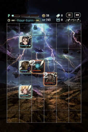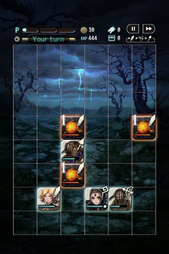 Los “puzles” o partidas de ajedrez rolero se vuelven cada vez más deliciosamente complicados: cada personaje tiene turnos diferentes, unas armas son más efectivas contra ciertos enemigos, los jefes ocupan más de lo normal y cuentan con habilidades especiales, las fichas pueden “empujarse” entre sí… Por no olvidar que puedes reclutar nuevos personajes entre combate y combate.